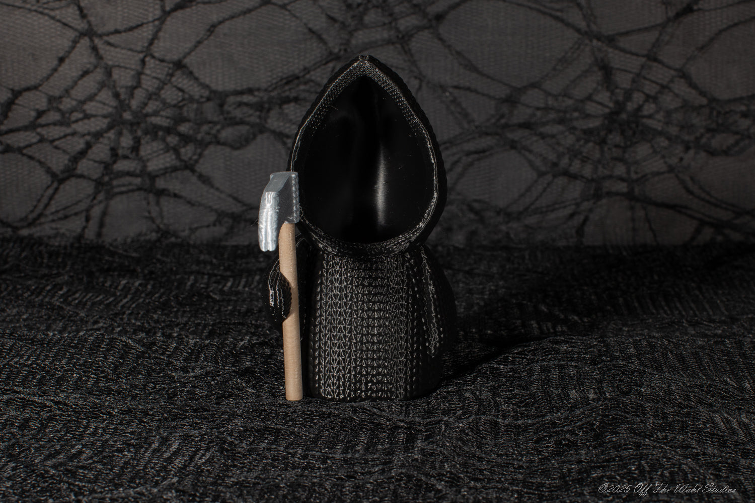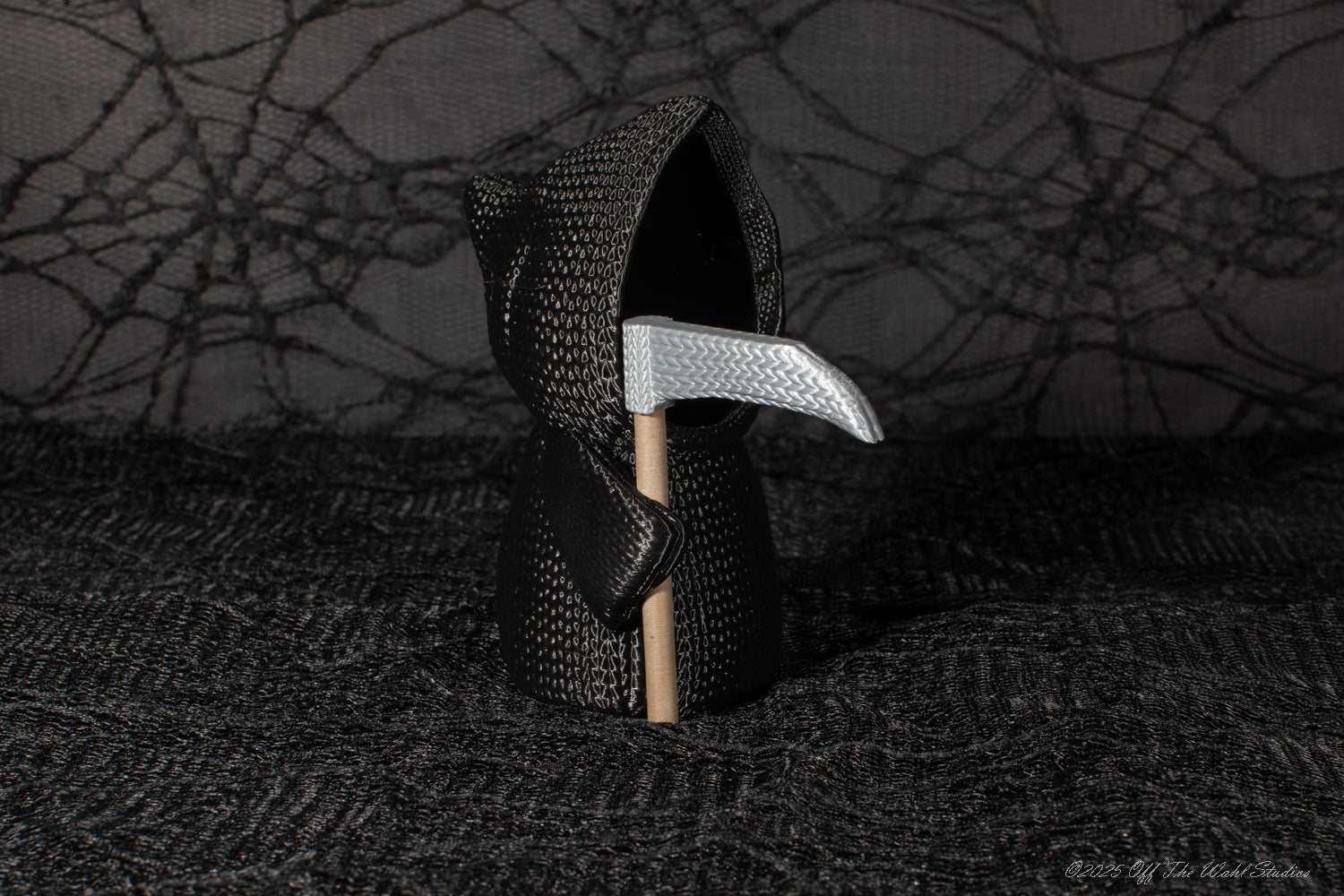 The collector of souls, The Grim Reaper himself, is here to illuminate your Halloween season. Standing at a bit over 4" tall, he can be placed just about anywhere to watch over you.